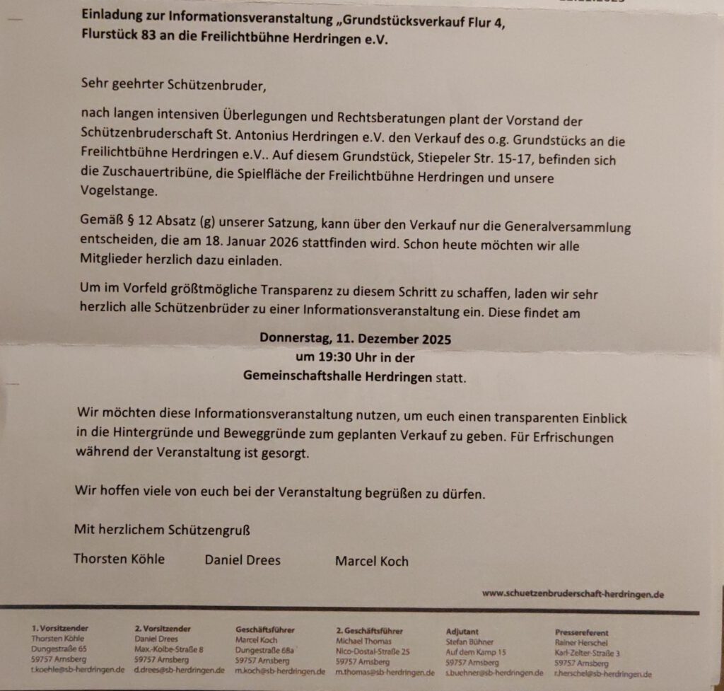 Im Mittelpunkt steht der mögliche Grundstücksverkauf des Flurstücks 4 an die Freilichtbühne Herdringen e.V.